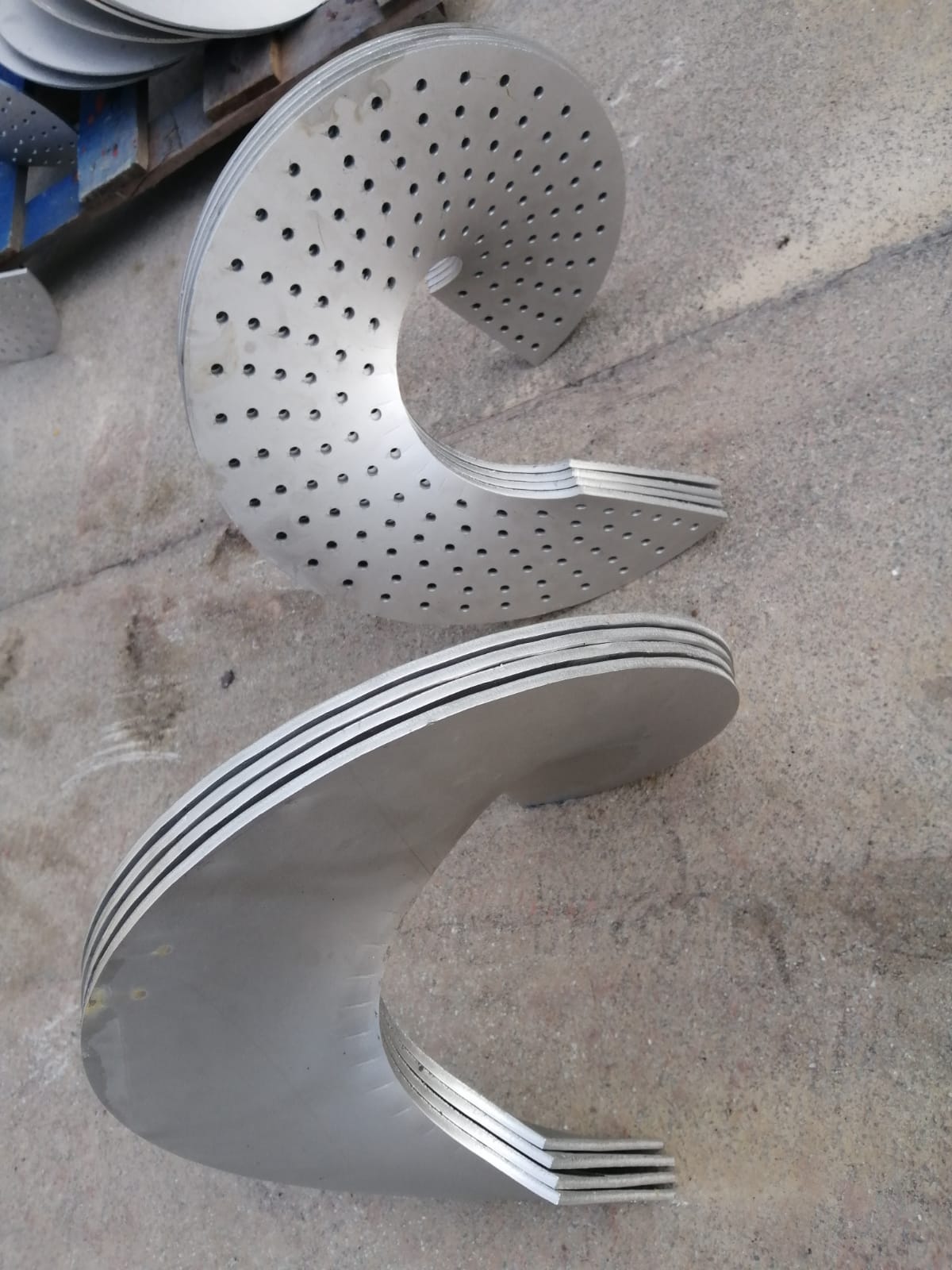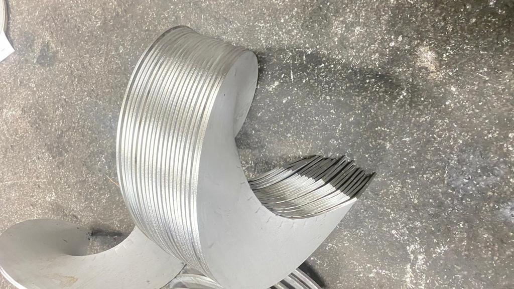 316 Tİ Yaprak Helezon: 316Ti kalite yaprak helezonlar , az miktarda Titanyum (Ti) içermektedir, oranı %0,5 civarındadır. Bu kalitenin diğer iki (316 – 316L) kaliteden en büyük avantajı sıcaklık yükseldikçe daha uzun süreli dayanımı olmasıdır. 316Ti kalite yaprak helezonlar 550-800° C arası yüksek sıcaklığa maruz kaldığı ortamlarda kullanılır.