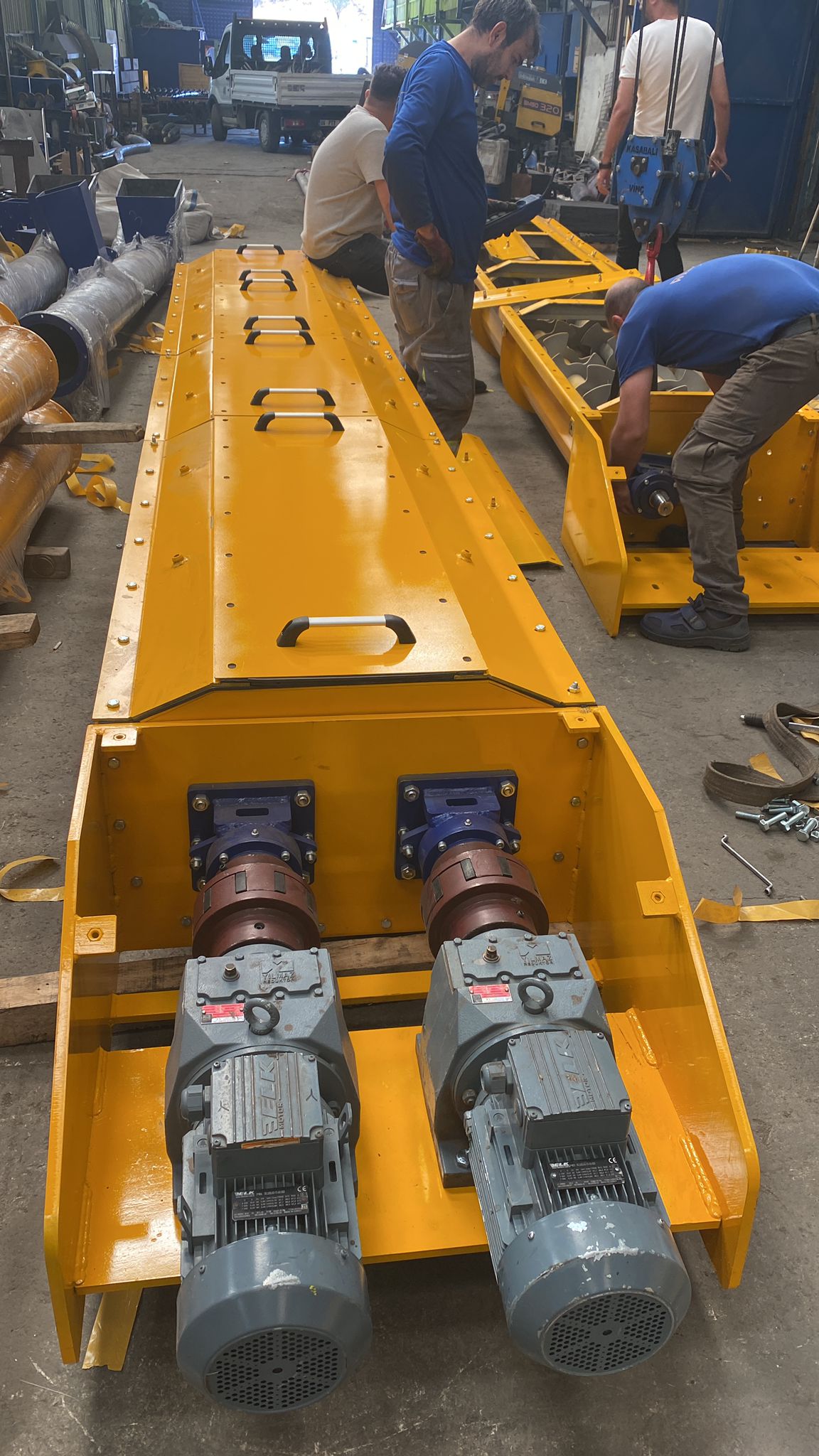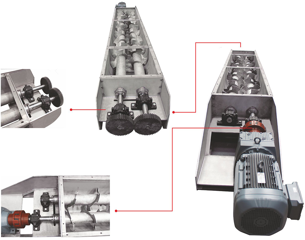 Ayrıca U Tipi Helezon Konveyörler müşteri isteğine bağlı olarak çift helezonlu olarak imalat edilebilir. Aynı şekilde U Tipi Çiftli Helezon Konveyörler karıştırma ve taşıma için kullanılabilir.